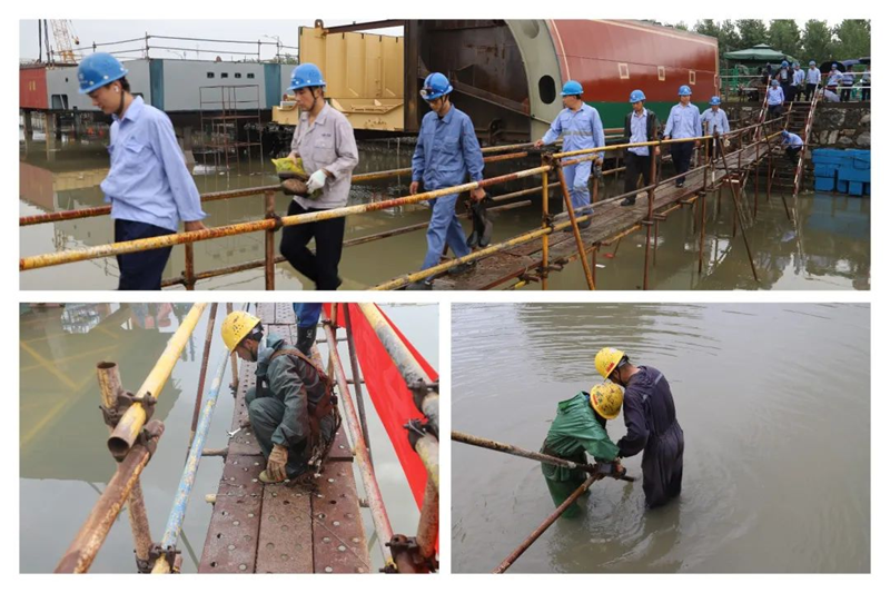 面對“一號洪峰”的來臨,后勤保障部門提前3個月策劃準備,轉移堤內辦公場所,現質量中心、總裝車間辦公室、船東、船檢已全部妥善轉移安置。