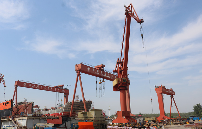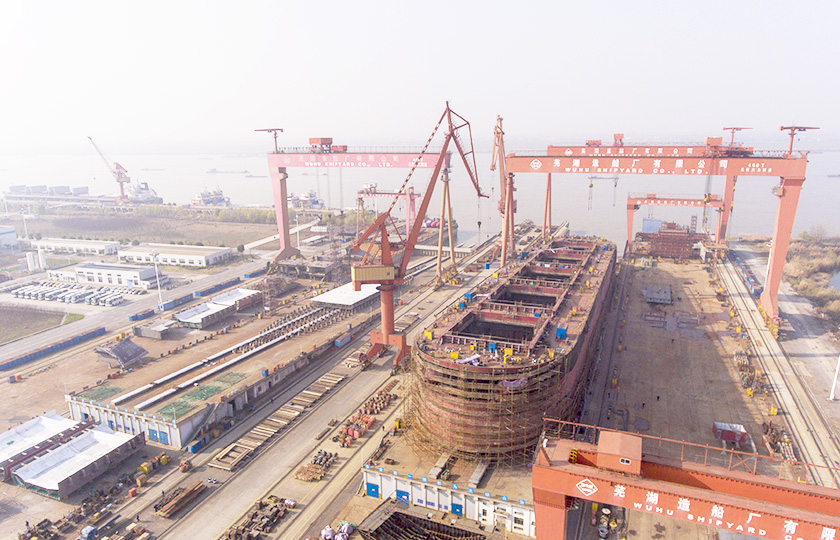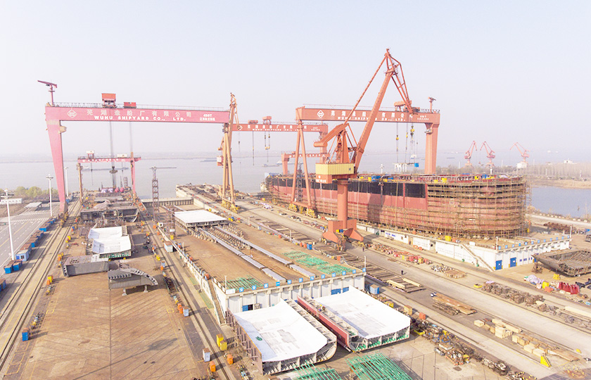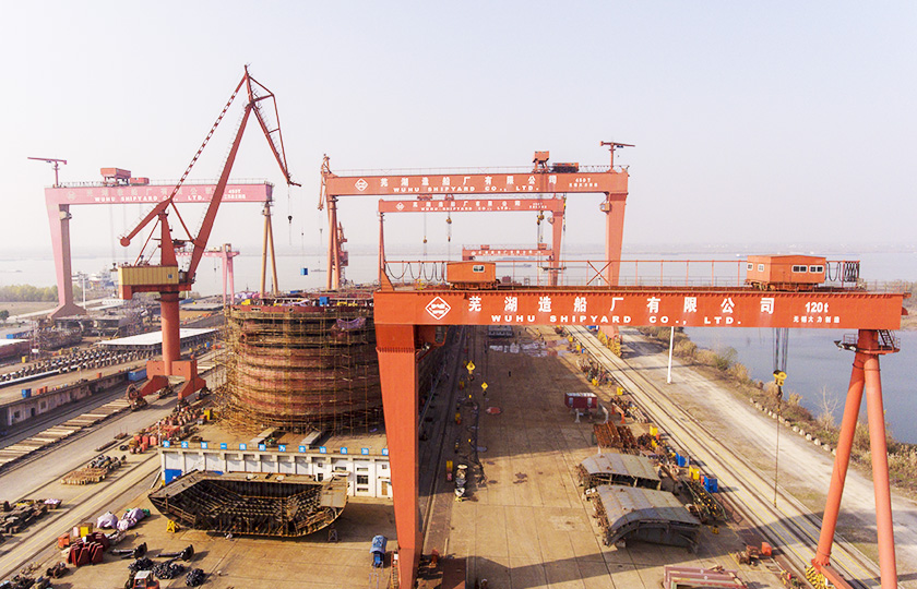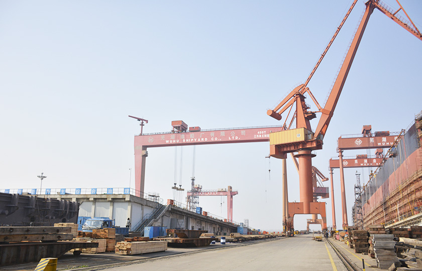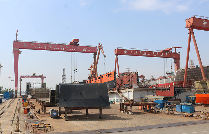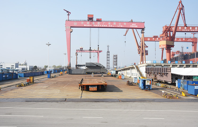公司蕪湖本部坐落于安徽省蕪湖市三山經濟開發區,占地面積121.07萬平方米,岸線總長1355米,配備2座80000噸級船臺和1座740米舾裝碼頭;威海基地占地680畝,年產值可達50億元;南通基地占地約3000畝,擁有兩座30萬噸干船塢,總岸線約1200多米,設施先進,規模顯著,三大基地協同聯動,共同構建起國內規模領先、設備一流、布局完善的現代化造船產業平臺。