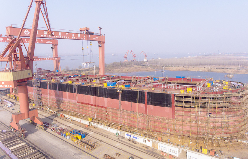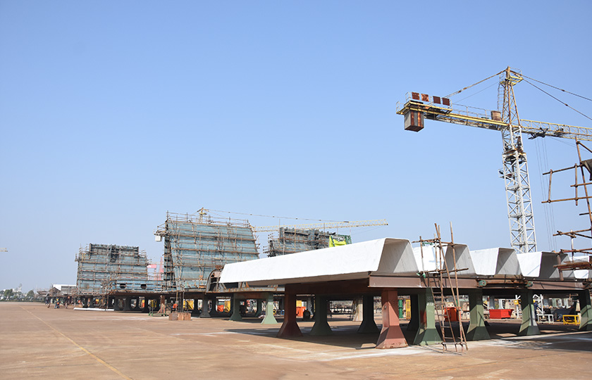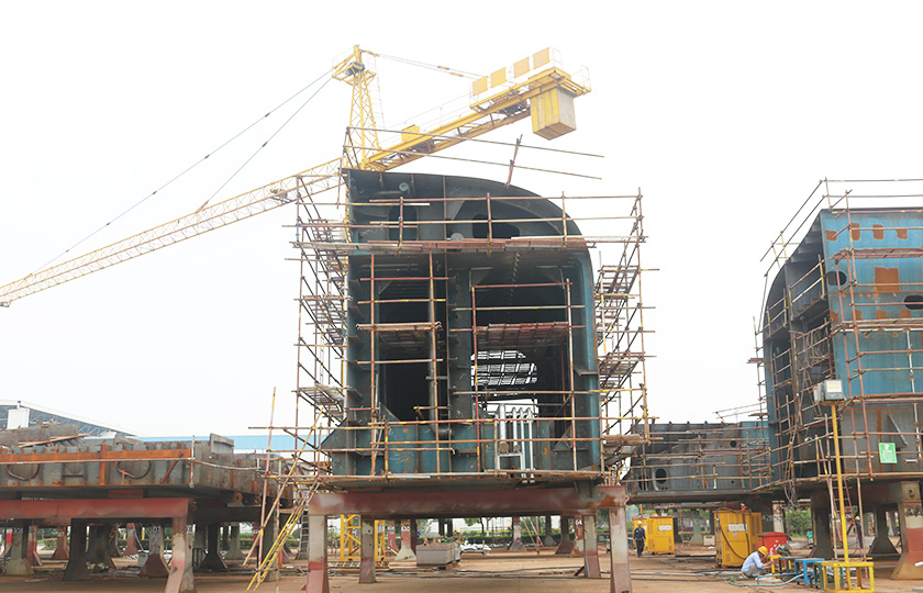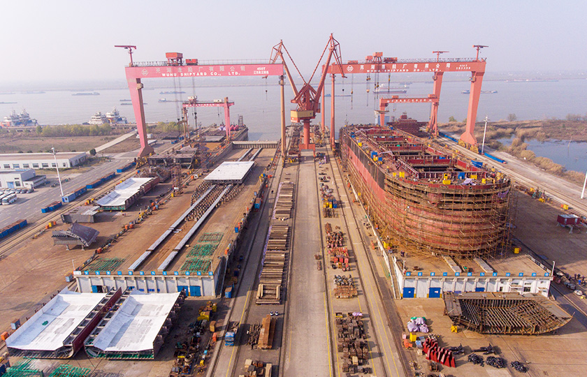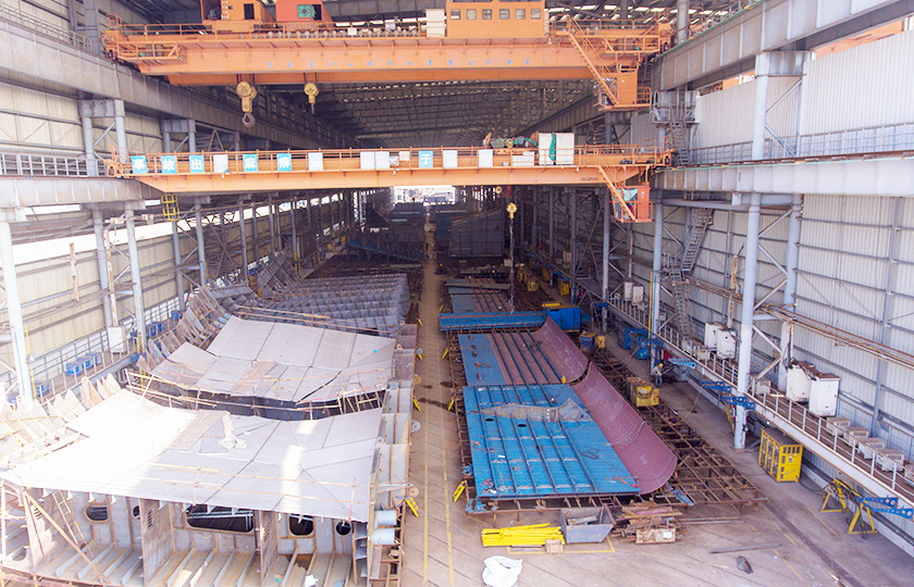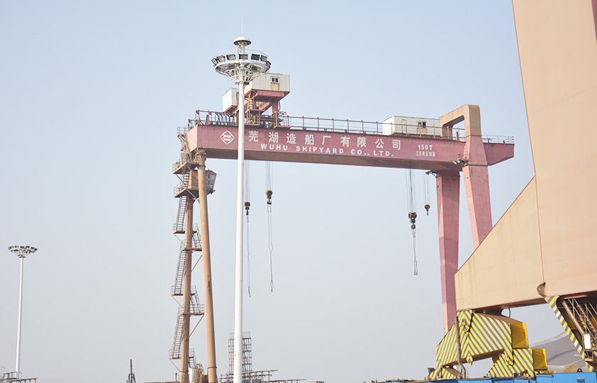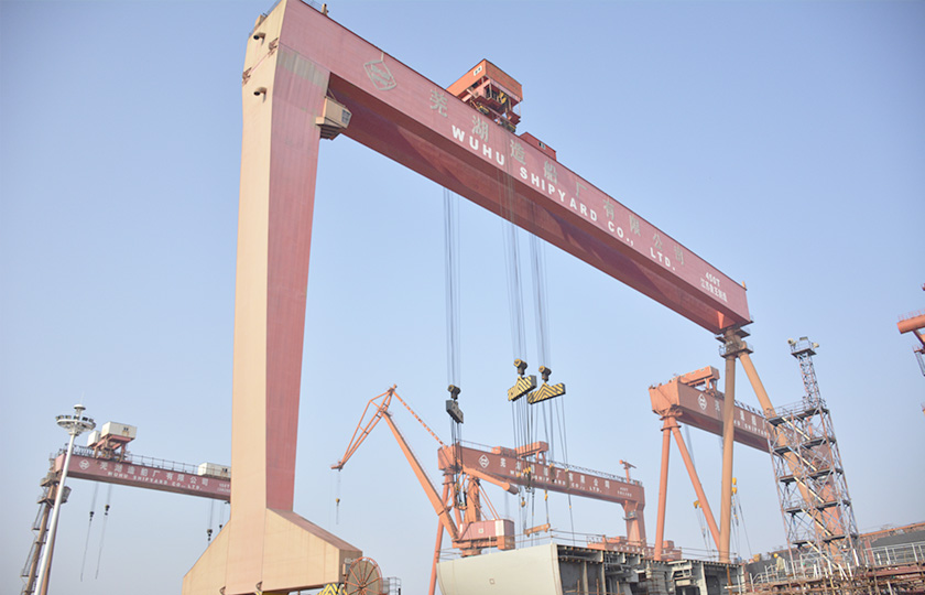 公司蕪湖本部坐落于安徽省蕪湖市三山經濟開發區,占地面積121.07萬平方米,岸線總長1355米,配備2座80000噸級船臺和1座740米舾裝碼頭;威海基地占地680畝,年產值可達50億元;南通基地占地約3000畝,擁有兩座30萬噸干船塢,總岸線約1200多米,設施先進,規模顯著,三大基地協同聯動,共同構建起國內規模領先、設備一流、布局完善的現代化造船產業平臺。